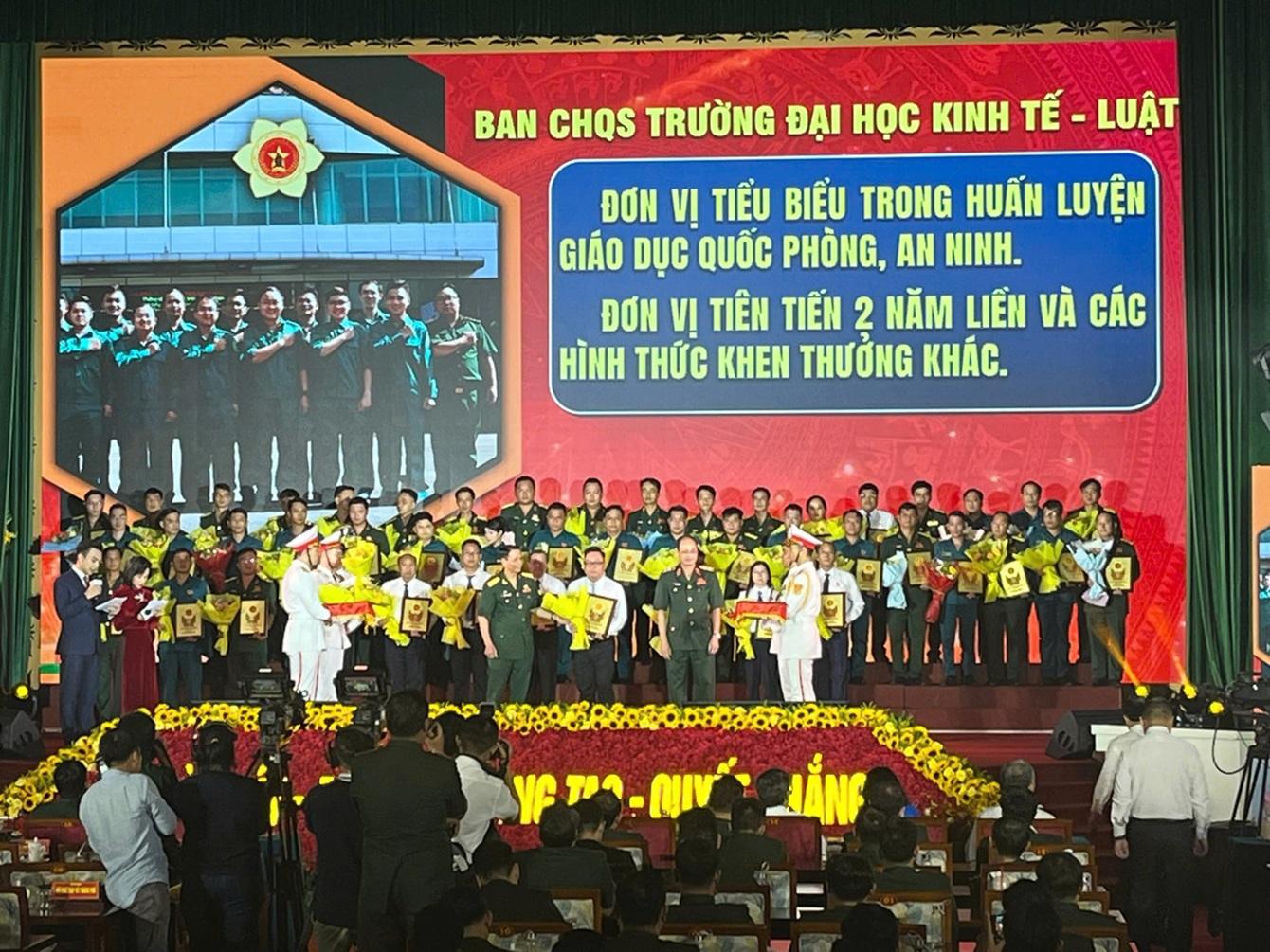 2023 | Giấy khen "Ban CHQS Trường Đại học Kinh tế - Luật đã có thành tích xuất sắc trong phong trào thi đua Quyết thắng lực lượng vũ trang thành phố Thủ Đức năm 2023" | Số 15993/QĐ-YBND ngày 28/11/2023 của Chủ tịch UBND TP. Thủ Đức |