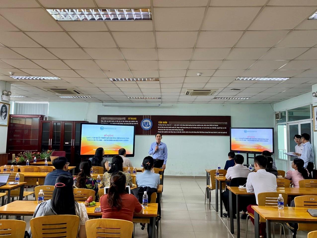 Ngày 23/11/2022, nhằm tổng kết và đánh giá lại kết quả học tập về thiết kế chương trình đào tạo trong hoạt động bảo đảm chất lượng giáo dục, Trường Đại học Kinh tế - Luật tổ chức Bế giảng khóa tập huấn thiết kế chương trình đào tạo theo OBE năm 2022.