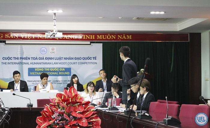 Lấy mô hình là phiên tranh tụng tại Toà án Hình sự Quốc tế, giải quyết một vụ án liên quan đến tội ác chiến tranh và những hành động vi phạm nghiêm trọng luật nhân đạo quốc tế, cuộc thi Cuộc thi Phiên tòa giả định về Luật Nhân đạo Quốc tế năm 2019 thu hút 10 đội thi đến từ 07 cơ sở đào tạo luật trên cả nước,bao gồm: Trường Đại học Kinh tế - Luật, ĐHQG-HCM; Trường Đại học Luật TP.HCM; Trường Đại học Cần Thơ, Đại học Huế; Học viện Ngoại giao; Trường Đại học Luật Hà Nội và Trường Đại học Khoa học xã hội và Nhân văn - ĐHQG Hà Nội.