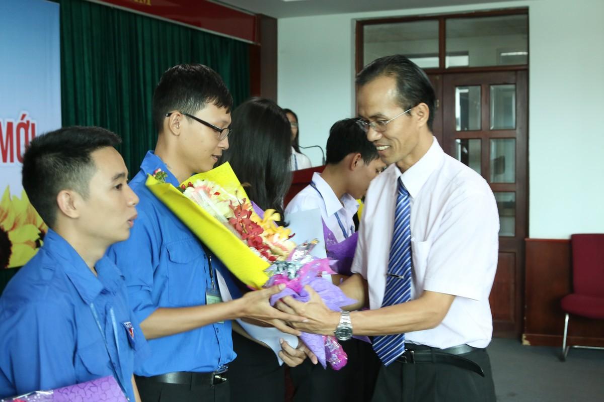 Đ/c Lê Tuấn Lộc - Phó Bí thư Đảng ủy, Phó Hiệu trưởng tặng hoa chúc mừng đảng viên mới
