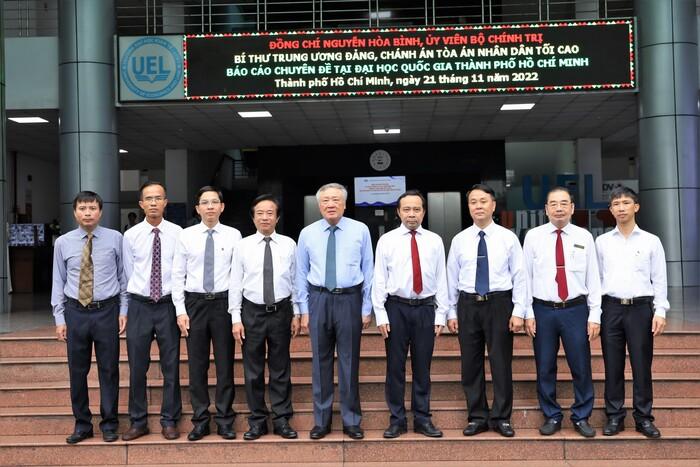 Ngày 21/11/2022, tại Trường Đại học Kinh tế - Luật, Đại học quốc gia TP. HCM đã đón tiếp đồng chí Nguyễn Hòa Bình, Uỷ viên Bộ Chính trị, Bí thư Trung ương Đảng, Chánh án toà án nhân dân tối cao về báo cáo chuyên đề.