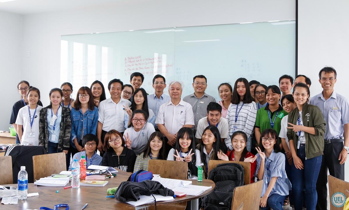 PGS.TS Phan Thanh Bình, Ban Giám hiệu nhà trường chụp hình cùng các em sinh viên lớp Kinh doanh quốc tế