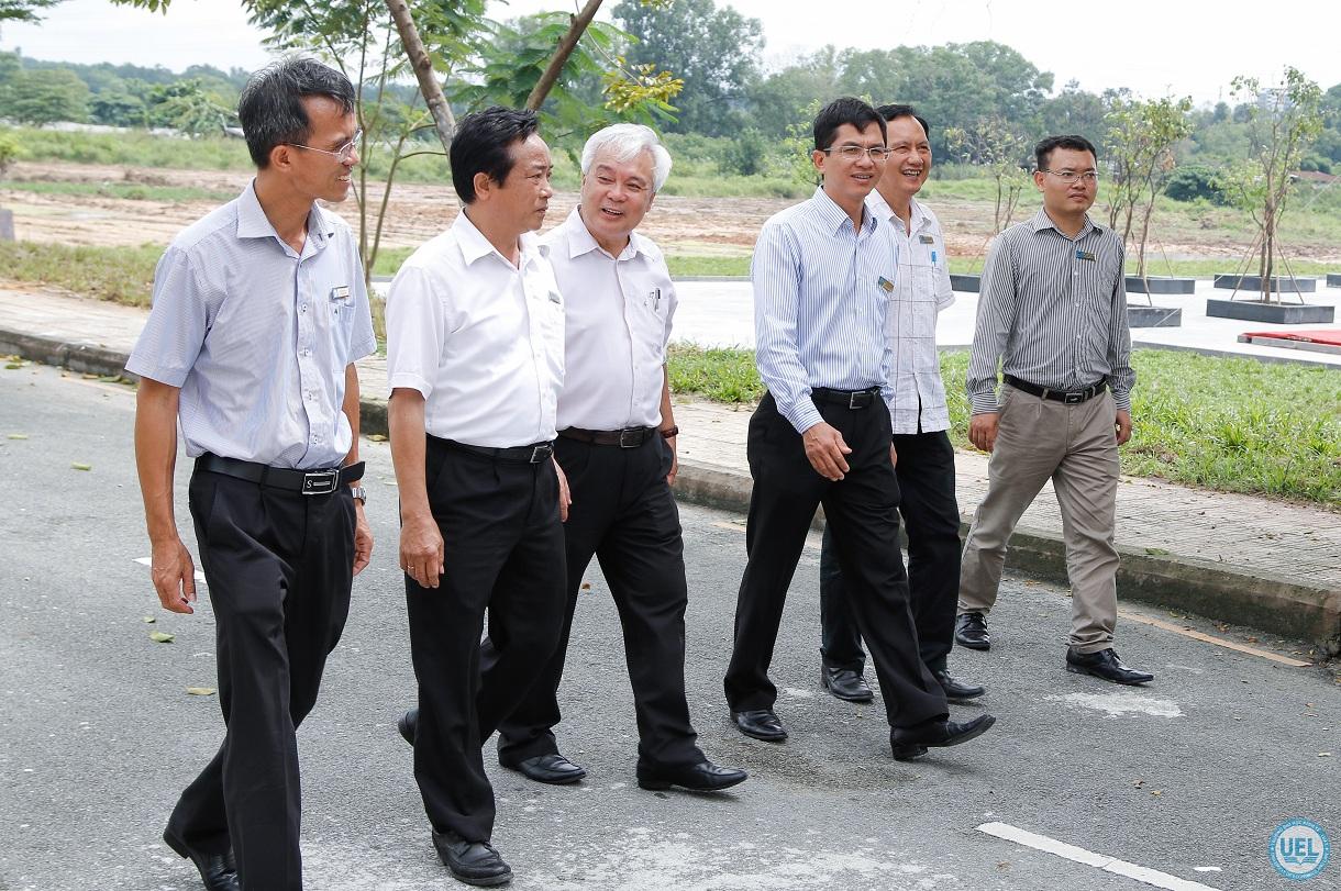 PGS.TS Phan Thanh Bình trao đổi cùng Ban Giám hiệu nhà trường và lãnh đạo Phòng Tổ chức - Hành chính, Phòng Cơ sở vật chất