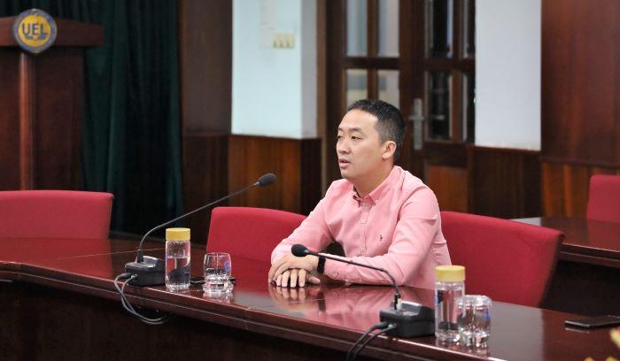 Tại buổi lễ, PGS.TS Hoàng Công Gia Khánh, Hiệu trưởng Trường đã đại diện lãnh đạo Trường chia sẻ về văn hóa làm việc tại UEL cũng như những định hướng phát triển của nhà Trường trong tương lai đặc biệt là định hướng phát triển khoa Luật.
