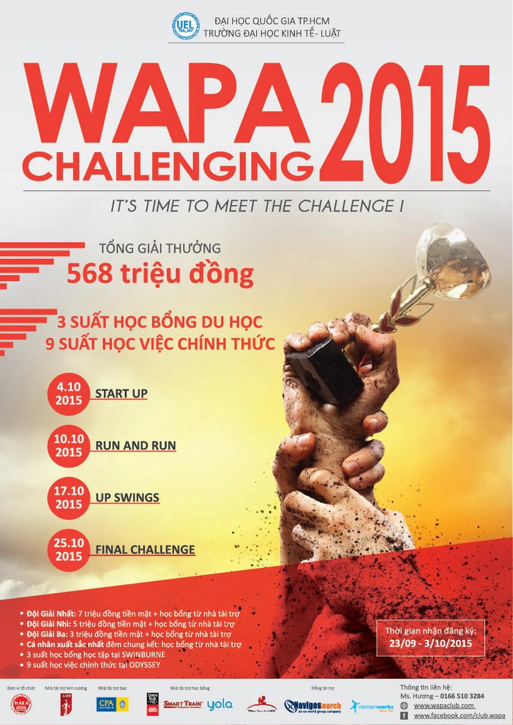 "WAPA Challenging" lần III - năm 2015 là một trong những sự kiện quan trọng thiết thực chào mừng kỷ niệm 15 năm Ngày truyền thống Trường Đại học Kinh tế - Luật (06/11/2000 - 06/112015). Cuộc thi là sân chơi thường niên quy mô cấp thành phố với sự đổi mới và hoàn thiện trong khâu tổ chức, truyền thông, chú trọng hơn về chất lượng chuyên môn, năng lực chuyên môn và kỹ năng ngoại ngữ của thí sin h
