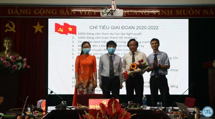 PGS.TS Nguyễn Tiến Dũng - Bí thư Đảng ủy tặng hoa cảm ơn Chi ủy Giảng viên 1 nhiệm kỳ 2017-2020