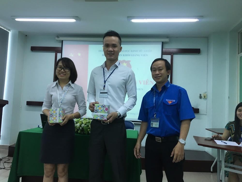 Th.S Hoàng Ngọc Hiếu - Đảng ủy viên, Bí thư Đoàn trường tặng quà chúc mừng BCH Chi đoàn nhiệm kỳ 2014 - 2016