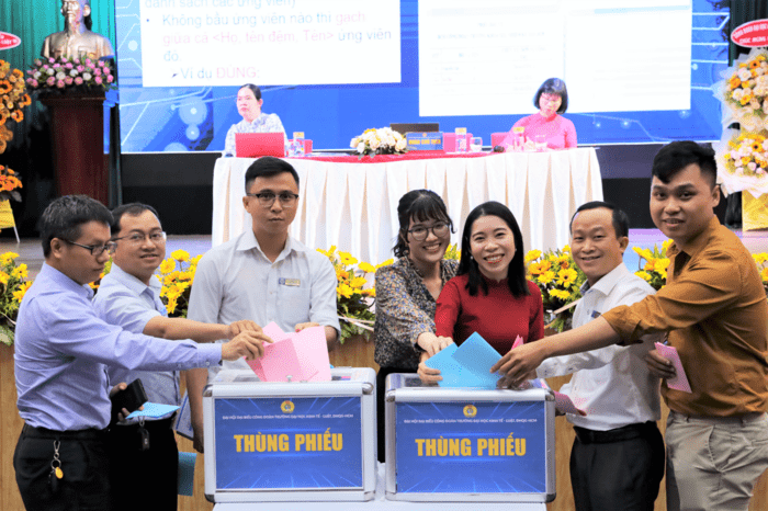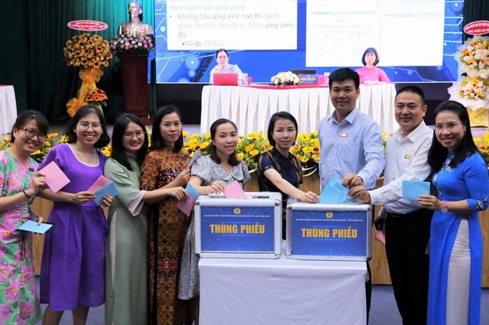 Các đại biểu tiến hành bỏ phiếu bầu Ban chấp hành Công đoàn Trường nhiệm kỳ 2023-2028