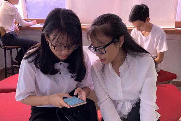 Thí sinh trao đổi thông tin trước giờ thi đánh giá năng lực của ĐH Quốc gia TP.HCM - Ảnh: TRẦN HUỲNH