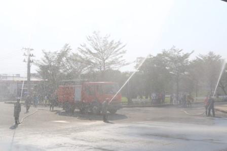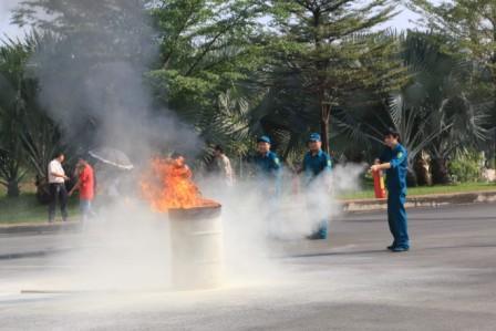 Buổi chiều cùng ngày, cuộc diễn tập diễn ra với tình huống thật cùng các phương tiện chữa cháy hiện đại.