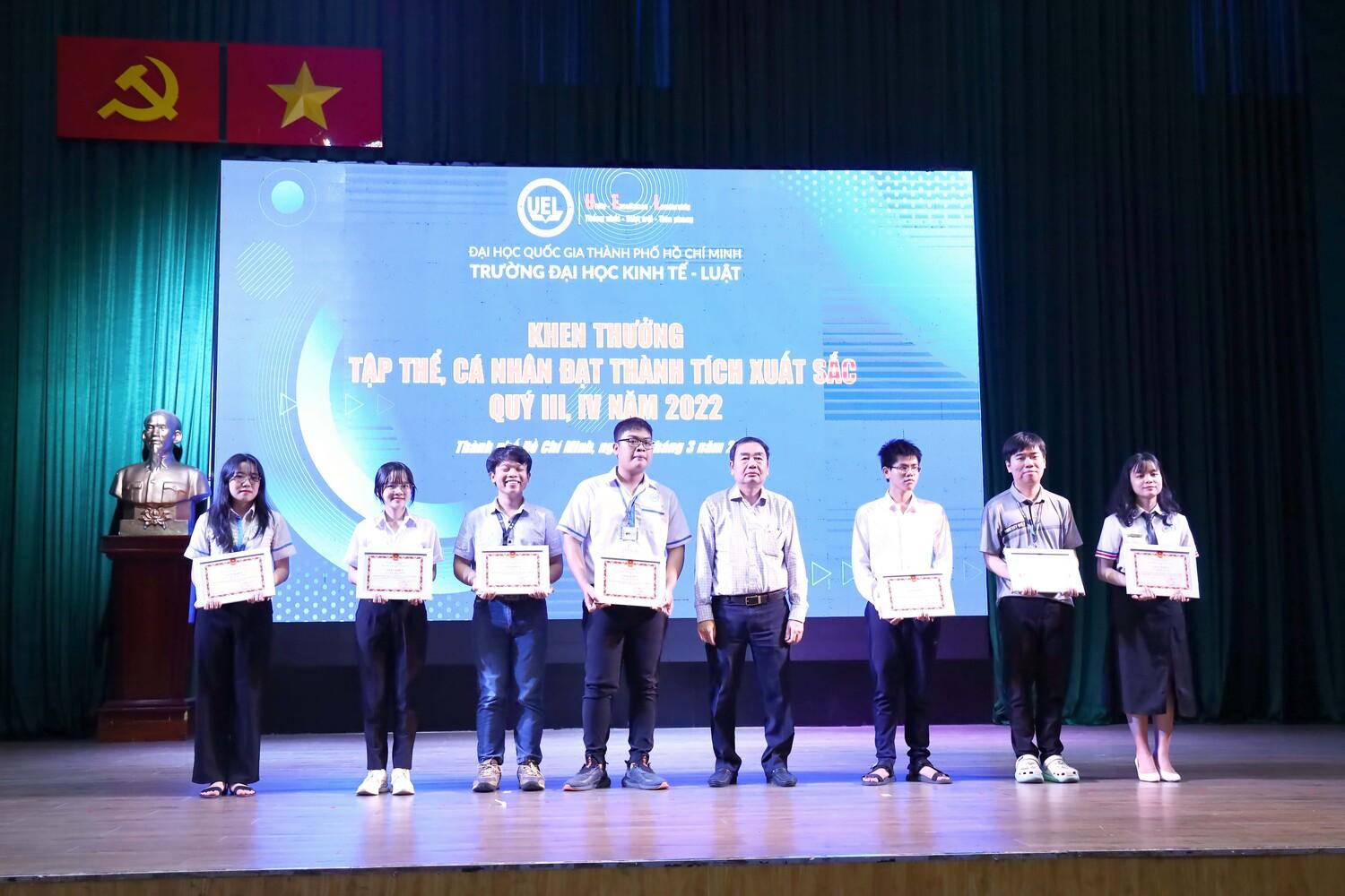 Tại Hội nghị, Trường cùng đối tác đã tổ chức trao học bổng "Đồng hành vượt khó" (đợt 1) năm học 2022 - 2023 cho 36 sinh viên từ nguồn tài trợ của Công ty CP tập đoàn Hoa Sen, Ngân hàng BIDV - Chi nhánh Đông Sài Gòn và Viện Kế toán Công Chứng Vương quốc Anh và xứ Wales (ICAEW). Đây là quỹ học bổng thường xuyên được Trường huy động, trao cho sinh viên có hoàn cảnh khó khăn vươn lên trong học tập với sự trao tặng của nhiều đối tác, doanh nghiệp. Đồng thời, khen thưởng tập thể, cá nhân sinh viên của Trường đạt thành tích xuất sắc quý III, IV năm 2022.