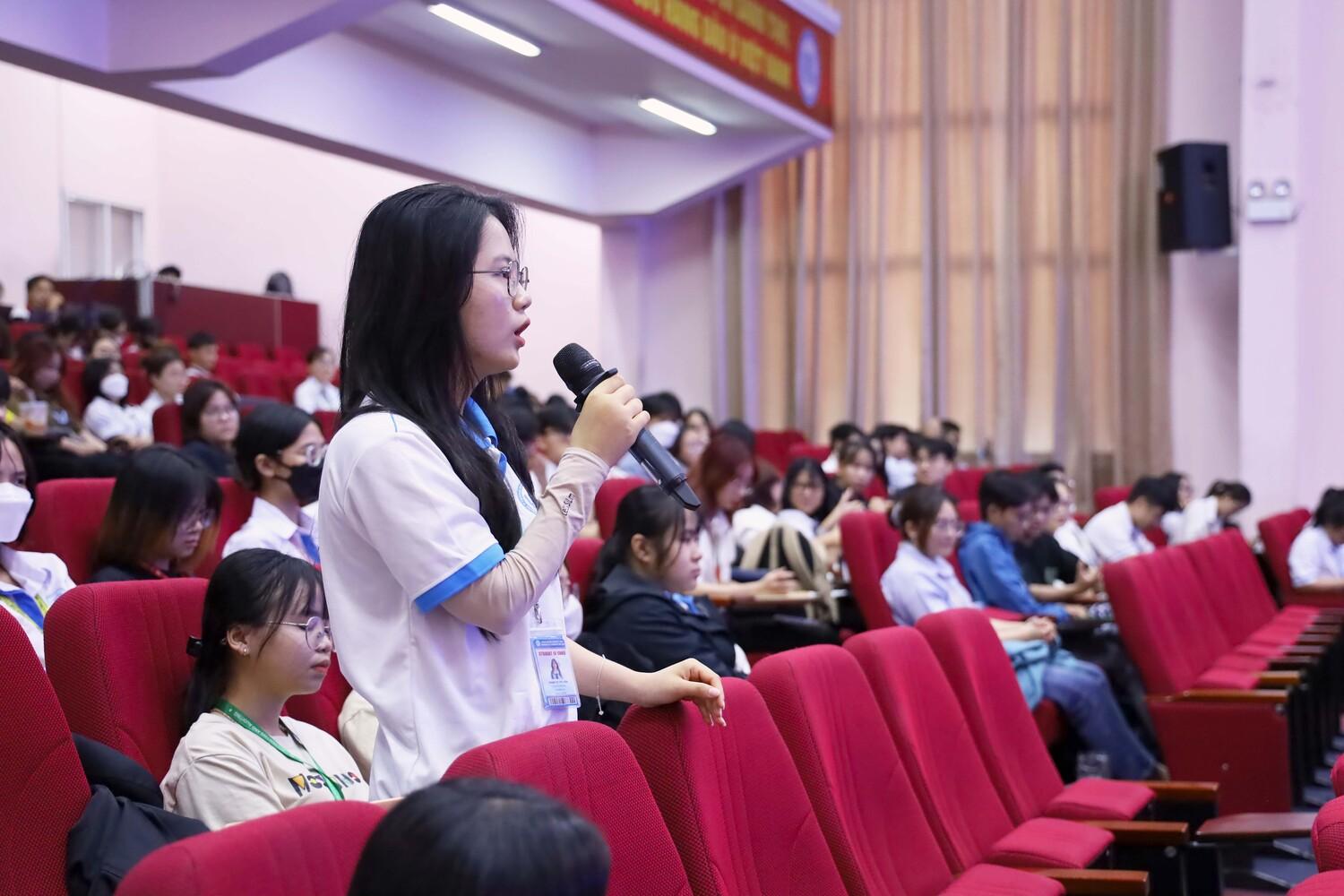 Trao đổi và giải đáp gần 70 lượt ý kiến của người học, lãnh đạo các đơn vị nhận được nhiều ý kiến lần lượt trả lời, phản hồi: TS Trần Thanh Long (Trưởng phòng Quản trị tài sản), ThS Cù Xuân Tiến (Trưởng Phòng Tuyển sinh và Công tác sinh viên), ThS Trần Tân Anh Phương (Phó Trưởng phòng Đào tạo), ThS Lợi Minh Thanh (Trưởng phòng Tài chính), ThS Võ Văn Trọng (Trưởng phòng Hành chính), ThS Trần Thị Hồng Xiêm (Giám đốc Thư viện), TS Lê Huy Đoàn (Viện phó Viện Đào tạo ngoại ngữ).