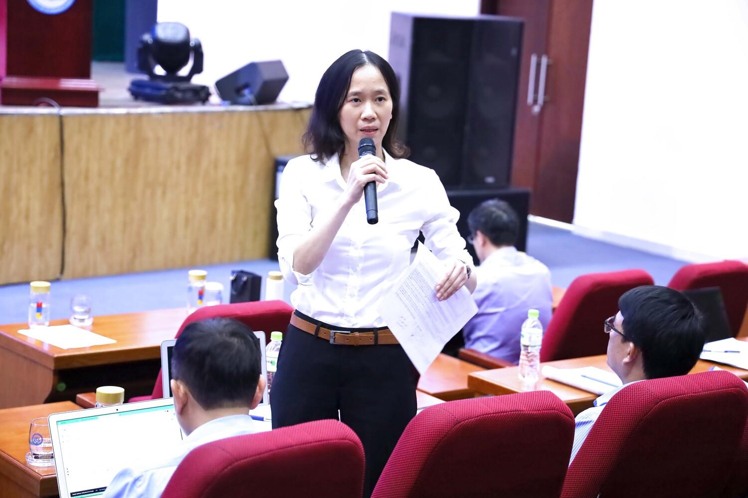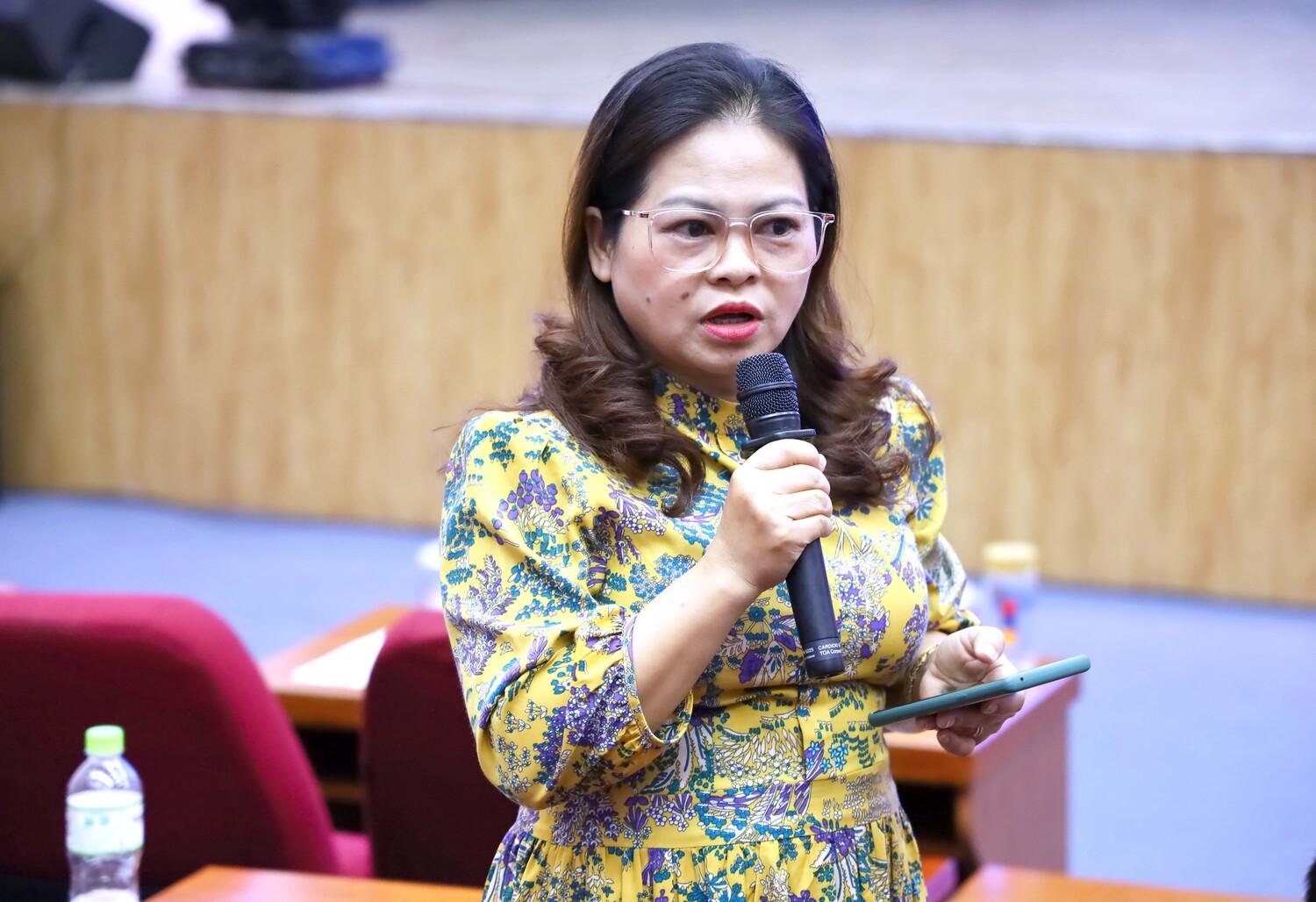 Sinh viên Phạm Thị Thu Hiền (lớp K22409) nêu ý kiến tại Hội nghị