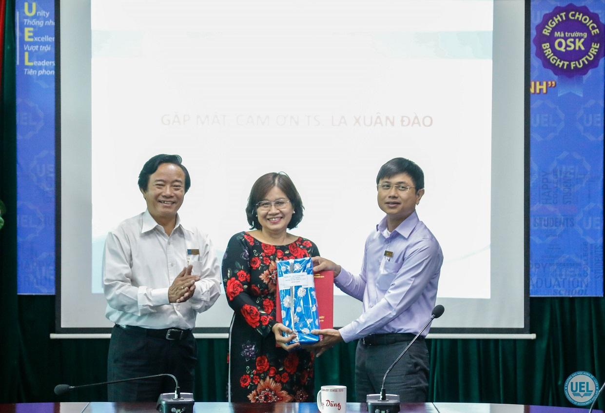 Thay mặt Ban Giám hiệu và các thầy cô, PGS.TS Nguyễn Tiến Dũng - Hiệu trưởng nhà trường cảm ơn những đóng góp của TS La Xuân Đào cho sự phát triển của UEL nói chung, của Khoa Kế toán - Kiểm toán nói riêng và mong Cô luôn mạnh khỏe, hạnh phúc.