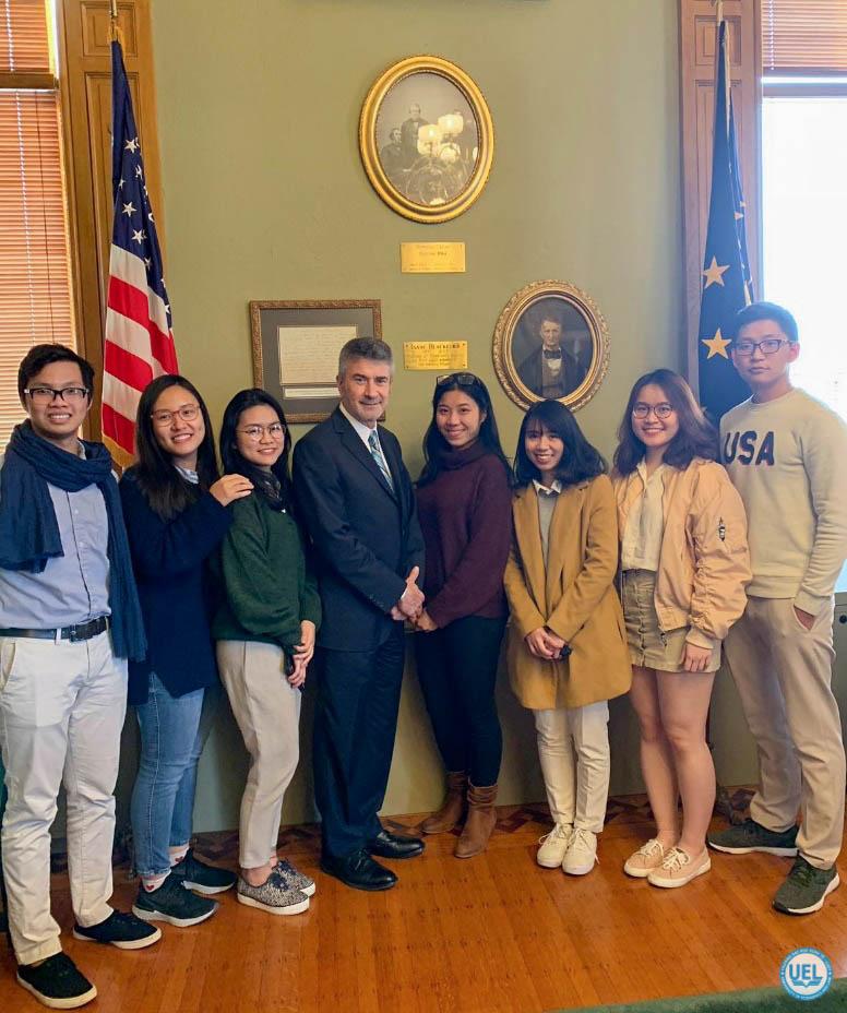 Cựu sinh viên UEL cùng Giáo sư Steven David - Thẩm phán Tòa án Tối cao Indiana