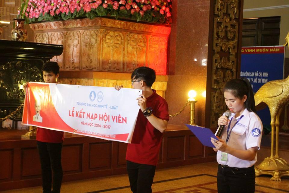 Đồng thời, Hội Sinh viên Việt Nam Trường ĐH Kinh tế - Luật ĐHQG - HCM cũng đã kết hợp tổ chức Lễ kết nạp Hội viên cho 1053 sinh viên khóa 16 trong đền tưởng niệm liệt sĩ Bến Dược.