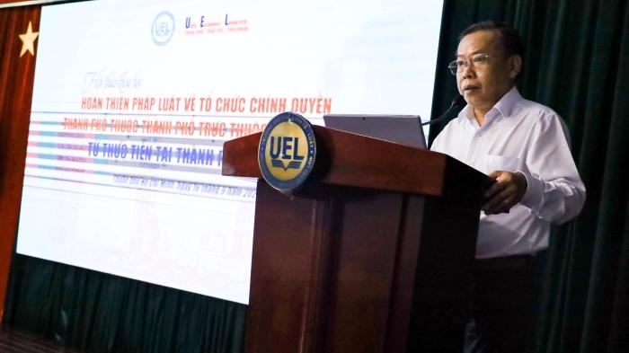 Ngày 16/9/2022, Trường Đại học Kinh tế - Luật, ĐHQG-HCM (UEL) tổ chức hội thảo "Hoàn thiện pháp luật về tổ chức chính quyền thành phố trong thành phố trực thuộc trung ương, từ thực tiễn tại Thành phố Thủ Đức" với mục tiêu tạo diễn đàn để các nhà khoa học và chuyên gia trong nước bàn luận, phân tích, đánh giá và kiến nghị các quy định pháp luật về chính quyền thành phố thuộc thành phố trực thuộc trung ương.