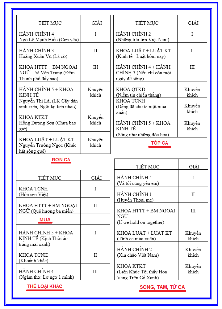 Hội diễn văn nghệ Trường khép lại. Sự thành công không chỉ dừng ở những giải thưởng, mà hơn hết là góp phần đẩy mạnh phong trào văn nghệ, gắn kết tinh thần, tạo điều kiện giao lưu giữa cá đơn vị trong Trường.