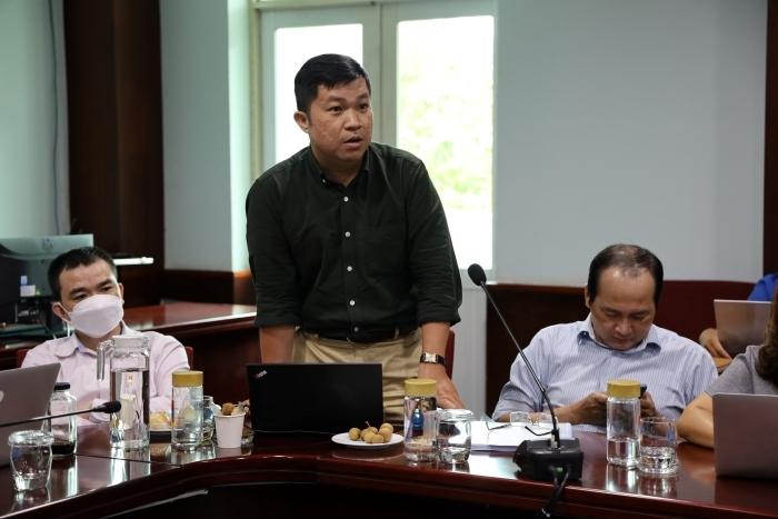 ThS Ngô Lê Mạnh Hiếu báo cáo về tình hình kiện toàn bộ máy và đào tạo bôi dưỡng nội bộ