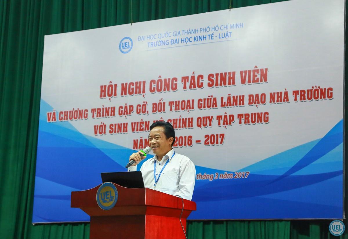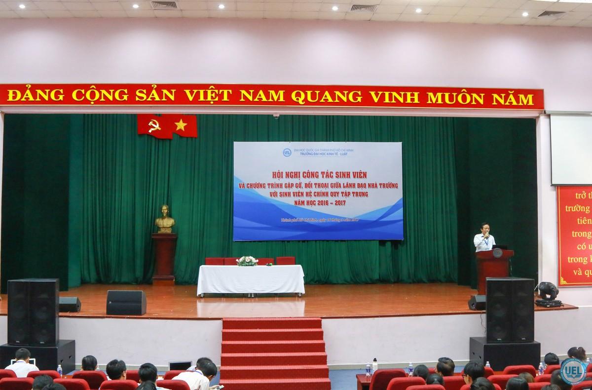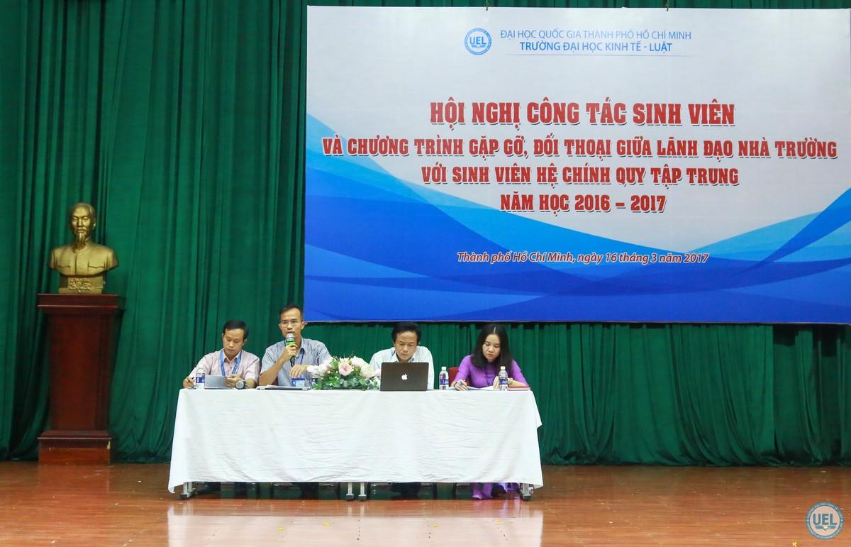 Ngày 16/3/2017 tại Hội trường A (Trường ĐH Kinh tế - Luật) đã diễn ra Hội nghị công tác sinh viên và Chương trình đối thoại giữa lãnh đạo trường với sinh viên hệ chính quy tập trung năm học 2016 - 2017.
