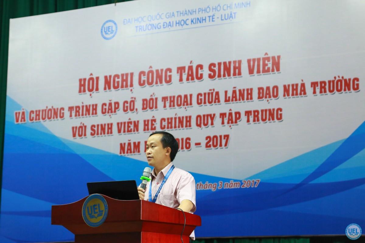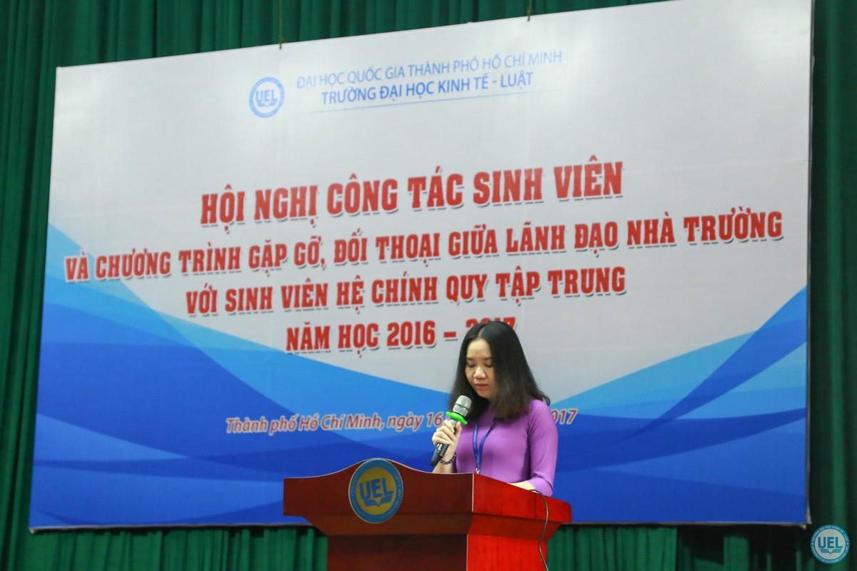 Tại Hội nghị, Phòng Công tác Sinh viên đã triển khai thông tin, hướng dẫn của Quy định thực hiện chương trình ngày công tác xã hội đối với sinh viên hệ chính quy tập trung Trường Đại học Kinh tế - Luật; cập nhật các thông tin về miễn, giảm học phí năm học 2016 - 2017 và quản lý sinh viên nội trú.