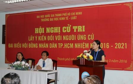 Ngày 8/3/2016, Trường Đại học Kinh tế - Luật, thuộc Đại học Quốc gia Hồ Chí Minh tổ chức Hội nghị cử tri lấy ý kiến đối với người ứng cử đại biểu Hội đồng Nhân dân TP. HCM nhiệm kỳ 2016 - 2021.