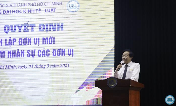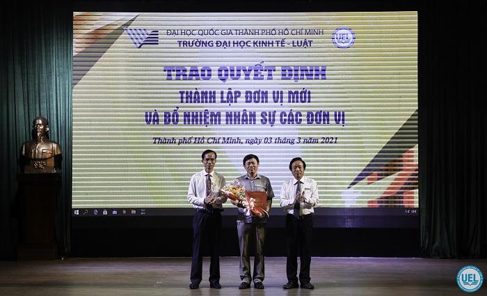 Ngày 03/03/2021, Trường Đại học Kinh tế - Luật đã tổ chức Hội nghị lấy ý kiến tín nhiệm nhân sự được đề nghị bổ nhiệm Phó Hiệu trưởng và trao quyết định thành lập các đơn vị mới, bổ nhiệm nhân sự các đơn vị tại Hội nghị.