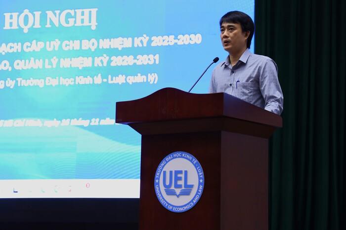 Tại hội nghị, chủ tịch hội đồng Trường PGS.TS Lê Tuấn Lộc phát biểu chỉ đạo và điều hành công tác bỏ phiếu giới thiệu cấp ủy chi bộ và lãnh đạo quản lý: "UEL đang đứng trước giai đoạn phát triển mạnh mẽ với rất nhiều thử thách và nhiệm vụ. Do đó, việc lựa chọn những cán bộ lãnh đạo để dẫn dắt, hoạch định đường lối, chính sách cho Nhà trường là điều vô cùng quan trọng. Việc quy hoạch và lựa chọn cán bộ cần phải kỹ lưỡng cẩn trọng và có tính kế thừa đảm bảo sự chuyển tiếp liên tục giữa các thế hệ, chủ động xây dựng đội ngũ lãnh đạo, quản lý các cấp, nhất là cán bộ chủ chốt, người đứng đầu đủ phẩm chất, năng lực và uy tín, ngang tầm nhiệm vụ"