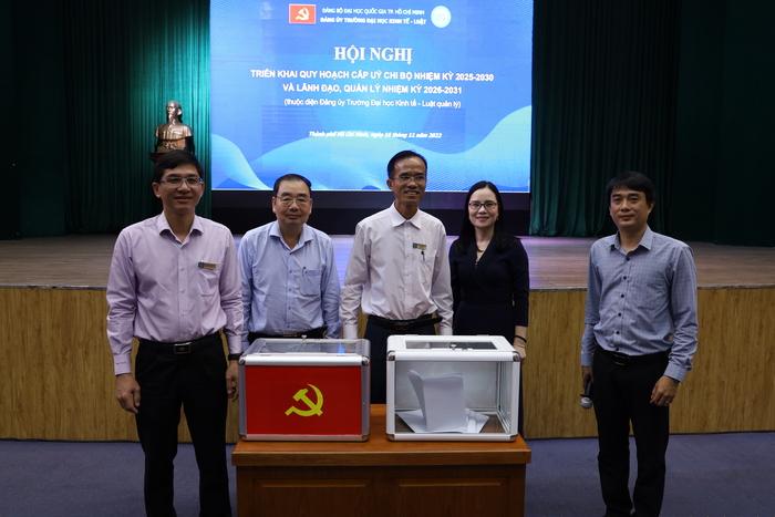 Việc tổ chức thực hiện công tác quy hoạch nguồn nhân sự cấp ủy các cấp nhiệm kỳ 2025 - 2030 và chức danh lãnh đạo, quản lý các cấp nhiệm kỳ 2026 - 2031 tại Trường Đại học Kinh tế - Luật là nhiệm vụ quan trọng và thể hiện tính dân chủ, công khai tại cơ sở. Theo đó, Trường Đại học Kinh tế - Luật đã triển khai thực hiện đồng thời việc rà soát, bổ sung quy hoạch đội ngũ lãnh đạo, quản lý nhiệm kỳ 2020 - 2025 và xây dựng quy hoạch đội ngũ lãnh đạo, quản lý nhiệm kỳ 2025 - 2030
