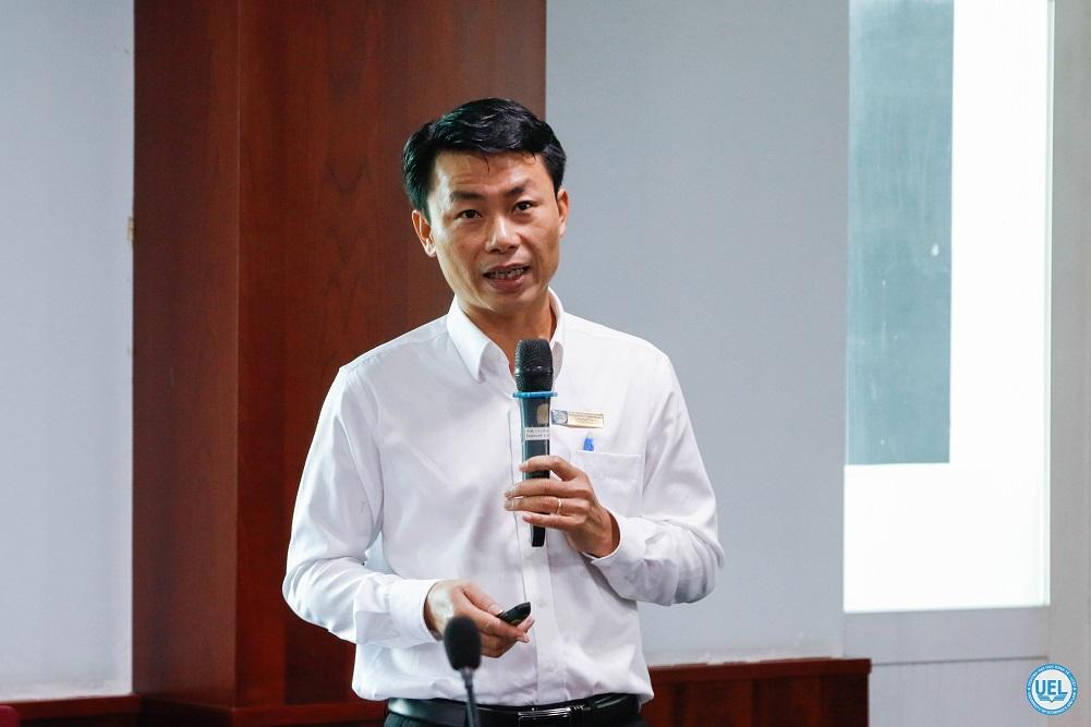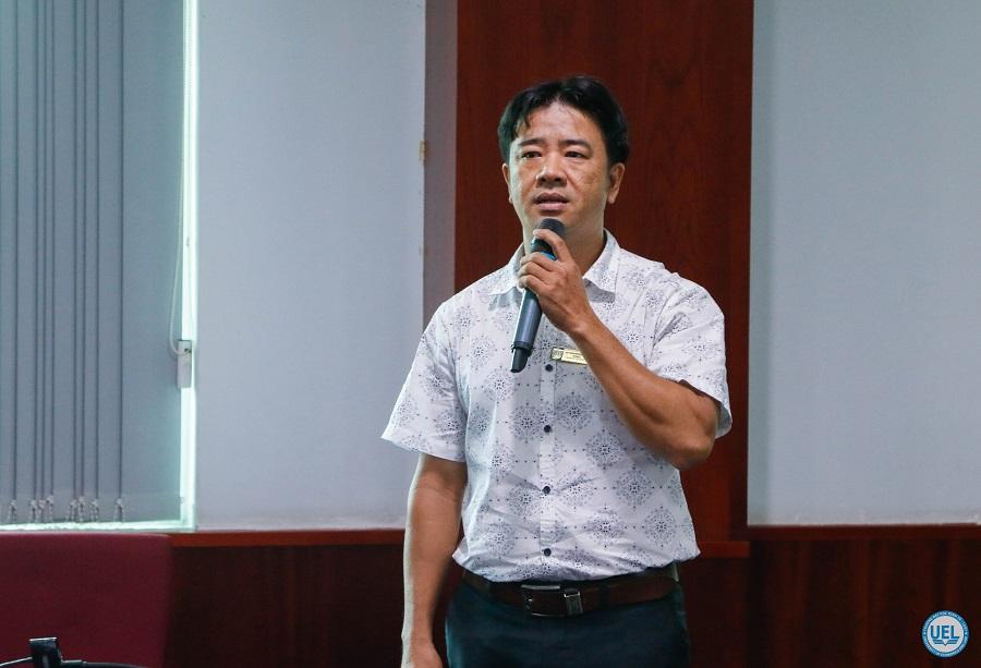 ThS Trần Quang Long - Giám đốc Trung tâm Đào tạo quốc tế báo cáo tổng kết công tác tuyển sinh