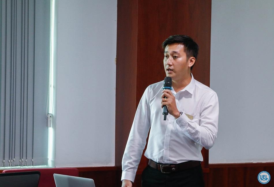 CN Phạm Lê Quang - chuyên viên phòng Sau đai học báo cáo tổng kết công tác tuyển sinh sau đại học 2018