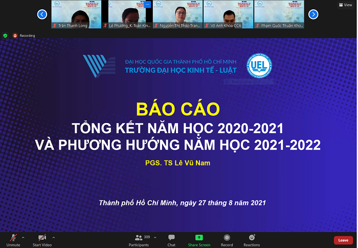 Ngày 27/8/2021, Trường Đại học Kinh tế - Luật, ĐHQG-HCM đã tổ chức Hội nghị tổng kết năm học 2020 - 2021 và triển khai phương hướng, nhiệm vụ năm học 2021 - 2022.