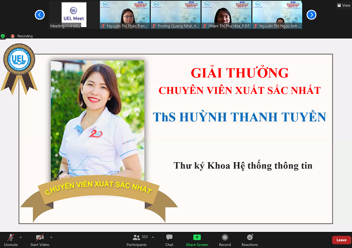 ThS Huỳnh Thanh Tuyền - Thư ký khoa Hệ thống thông tin là Chuyên viên xuất sắc nhất năm học 2020-2021