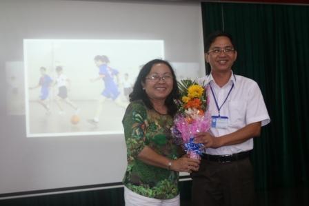 Đại diện Công đoàn Trường tặng hoa cảm ơn đại diện BGH nhà trường.