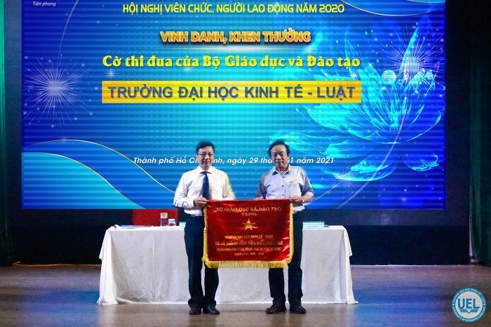 trao Cờ thi đua của Bộ Giáo dục và Đào tạo đến Tập thể Trường Đại học Kinh tế - Luật