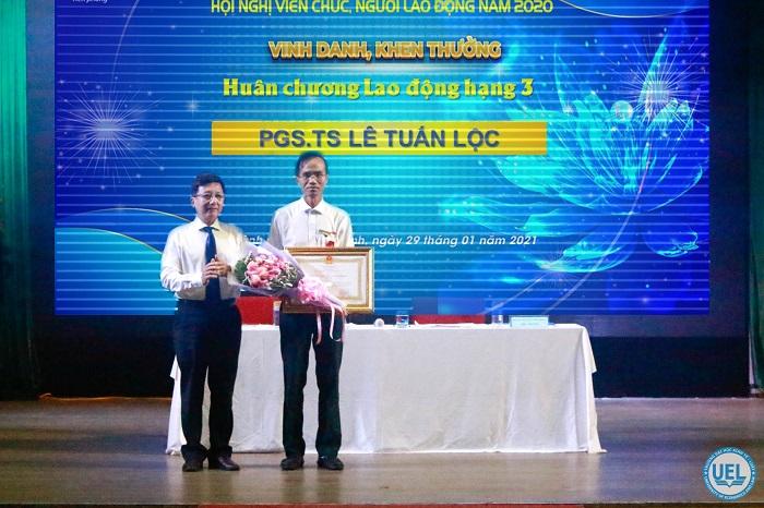 PGS.TS Lê Tuấn Lộc - Bí thư Đảng ủy, Chủ tịch Hội đồng Trường đón nhận Huy chương Lao động hạng 3