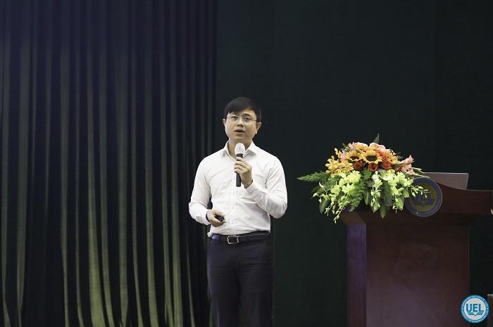 PGS.TS Lê Vũ Nam - Phó Hiệu trưởng nhà trường trình bày báo cáo, nhận định hoạt động 2020,