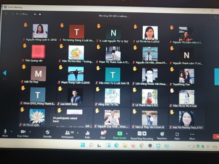 Hội nghị được tổ chức với cả hai hình thức trực tiếp tại Hội trường A, Trường Đại học Kinh tế - Luật và trực tuyến thông qua nền tảng Zoom Meeting, đảm bảo quy định phòng chống dịch COVID-19.