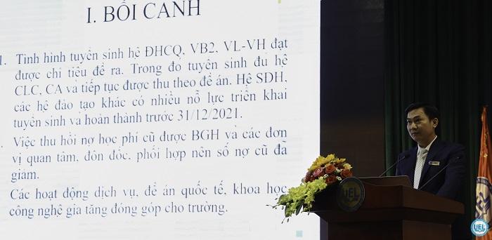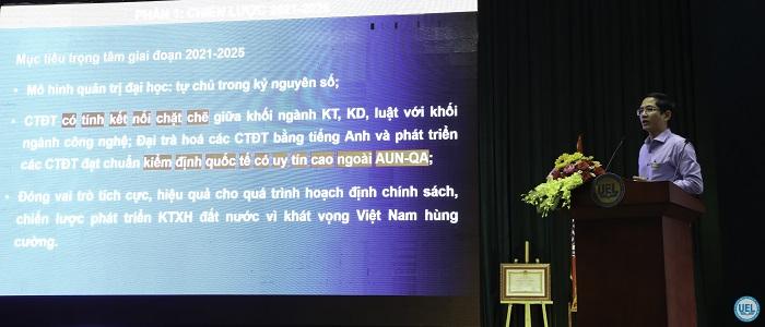 PGS.TS Hoàng Công Gia Khánh - Phó Hiệu trưởng nhà trường trình bày báo cáo, nhận định