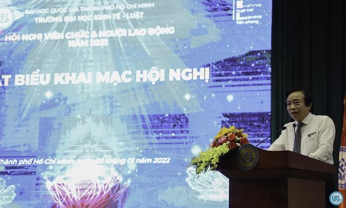 Ngày 05/01/2022, tại Trường Đại học Kinh tế - Luật đã diễn ra Hội nghị viên chức và người lao động năm 2021 nhằm tổng kết, đánh giá những hoạt động, kết quả đã đạt được trong năm 2021; chỉ ra những hạn chế, tổng kết tại và đề ra những phương hướng, giải pháp khắc phục và phát triển cho năm 2022; cụ thể hoá những chủ trương của Hội nghị Thường niên ĐHQG-HCM 2021. Đồng thời, Hội nghị diễn ra hoạt động lấy ý kiến của viên chức, người lao động đối với các vấn đề quan trọng của Nhà trường trong năm 2022.