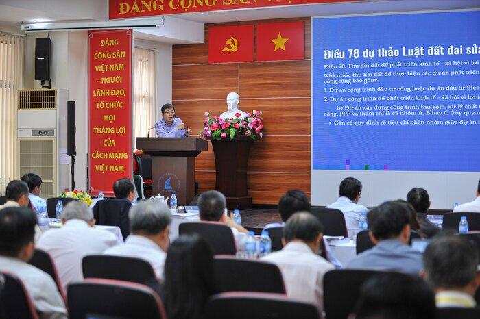 Hội thảo là diễn đàn quan trọng để các nhà khoa học, các nhà hoạch định chính sách và các cơ quan, tổ chức hữu quan trao đổi, thảo luận chuyên sâu về cơ chế dịch chuyển đất đai, góp phần đóng góp ý kiến cho dự thảo Luật Đất đai (sửa đổi) và Dự thảo Nghị quyết thay thế Nghị quyết số 54/2017/QH14 về thí điểm cơ chế, chính sách đặc thù phát triển TP.HCM.