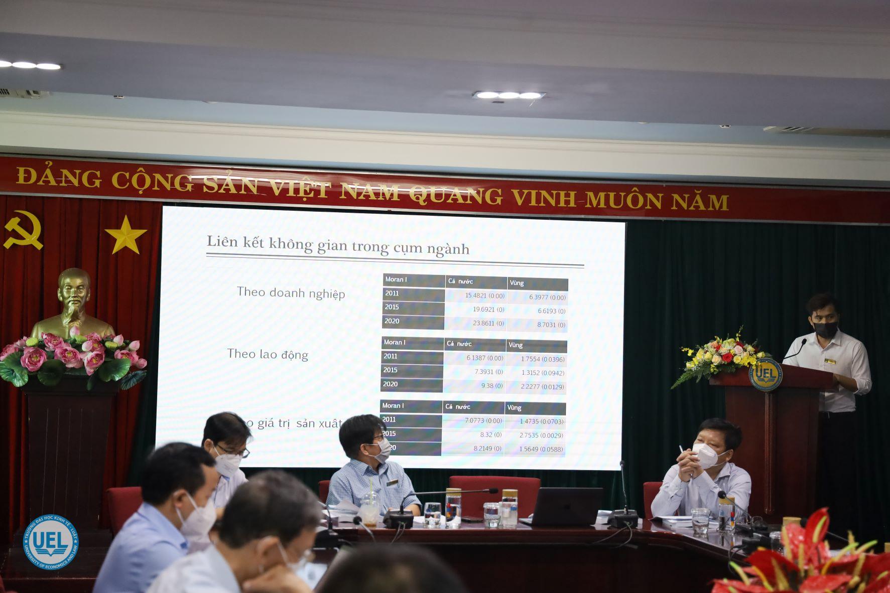 Tham luận 1: "Phân tích không gian cụm ngành công nghiệp thực phẩm tại vùng Kinh tế trọng điểm phía nam trong hội nhập quốc tế" của ThS Huỳnh Ngọc Chương.