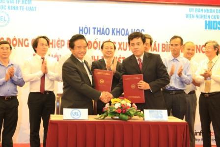 Cũng tại Hội thảo này, Trường Đại học Kinh tế - Luật và Viện Nghiên cứu phát triển đã ký kết hợp tác với các nội dung chính: Triển khai nghiên cứu, phổ biến và bồi dưỡng các kiến thức trong quá trình hội nhập quốc tế, tham gia của Việt Nam trong các Hiệp định TPP, FTA, cộng đồng ASEAN đến các doanh nghiệp, tổ chức, địa phương và trường đại học; Phối hợp trong nghiên cứu, tư vấn, phản biện các lĩnh vực kinh tế, xã hội, đô thị, môi trường nhằm phục vụ cho quá trình phát triển của đất nước, thành phố Hồ Chí Minh và các địa phương; Phối hợp trong công tác đào tạo; nghiên cứu khoa học; tổ chức các hội thảo, hội nghị gắn với lĩnh vực hoạt động và thế mạnh của hai đơn vị.