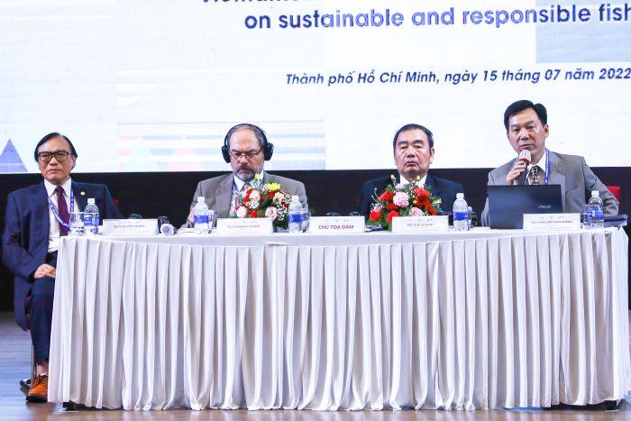 Khai mạc hội thảo PGS.TS Lê Vũ Nam cho biết: Hội thảo thực sự là diễn đàn để các chuyên gia, nhà khoa học, nhà quản lý, kinh doanh, nghiên cứu, giảng dạy của Việt Nam và quốc tế bàn luận về khung pháp luật quốc tế và Việt Nam đối với khai thác thuỷ sản bền vững, có trách nhiệm và biện pháp chế tài đối với hành vi đánh bắt cá bất hợp pháp, không có báo cáo, không theo quy định; khuyến nghị giải pháp tháo gỡ thẻ vàng cho ngành thuỷ sản Việt Nam.