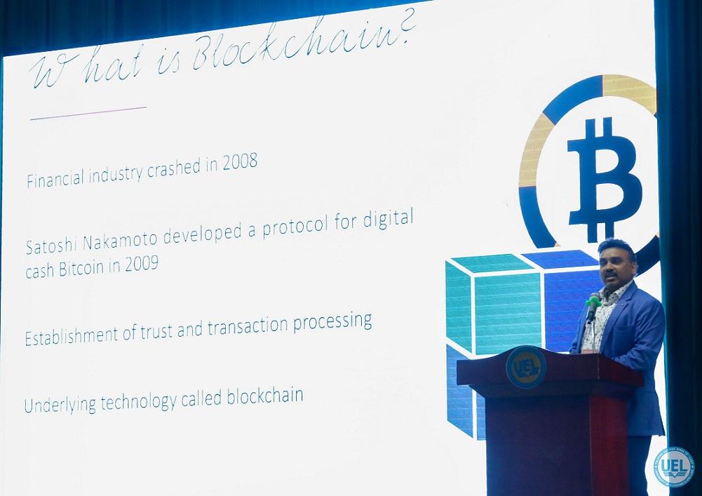 Diễn giả Naveen Chilamkurti (Úc) trình bày tham luận về Blockchain