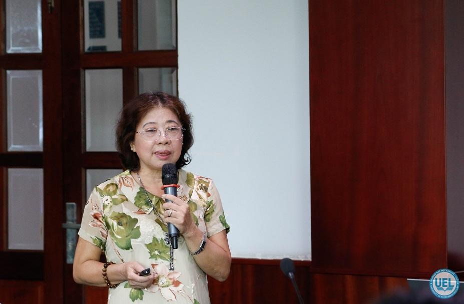 GS.TS Nguyễn Thị Cành trình bày tham luận "Đo lường lợi thế cạnh tranh, sản phẩm động lực