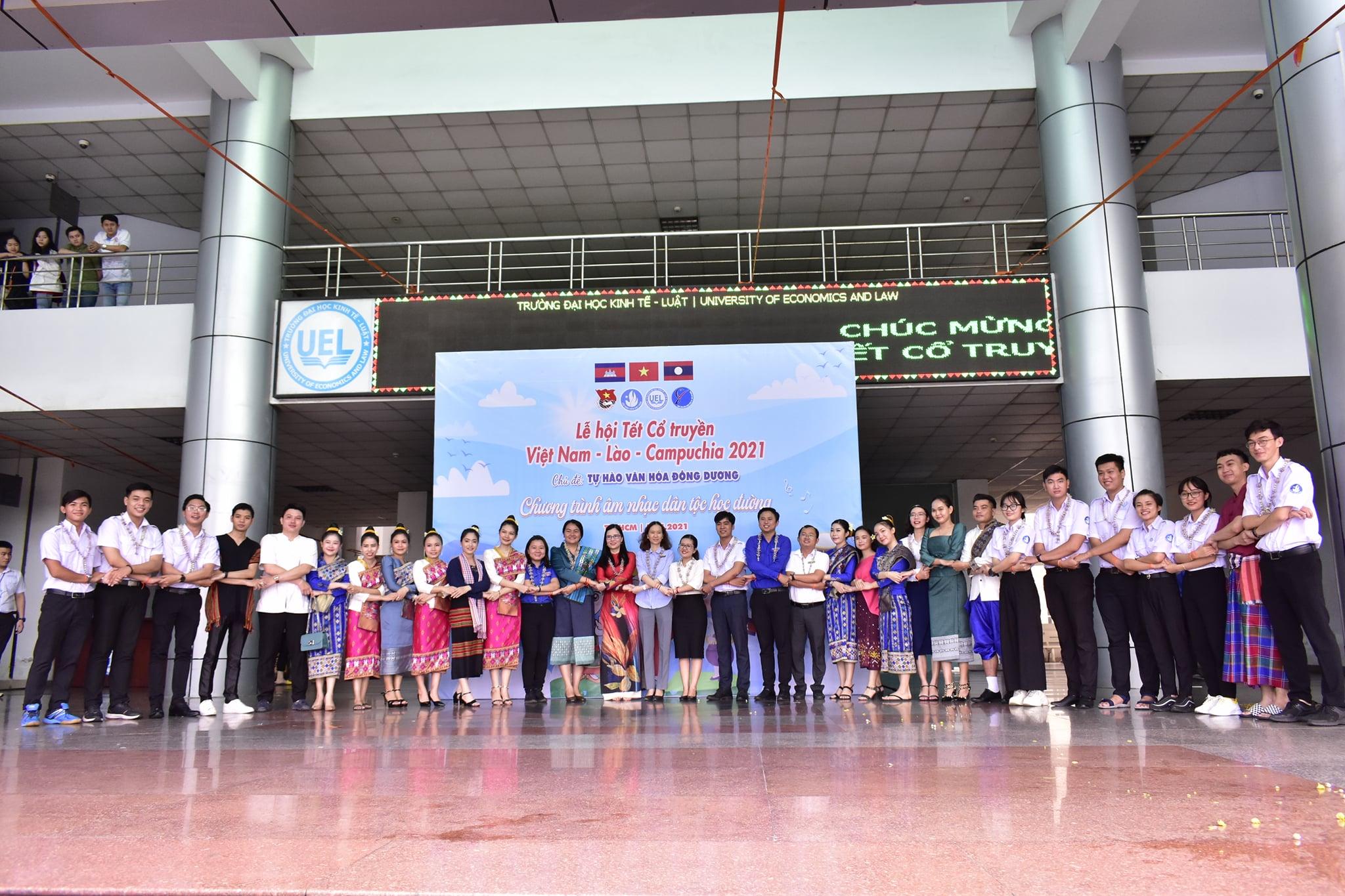 Sáng ngày 17/04, Trường Đại học Kinh tế - Luật tổ chức Lễ hội tết cổ truyền Việt Nam - Lào - Campuchia với sự tham gia của hơn 1.000 Sinh viên Việt Nam và quốc tế nhân dịp Tết truyền thống của dân tộc Lào (Bunpimay) và dân tộc campuchia (Chol Chnam Thmay).