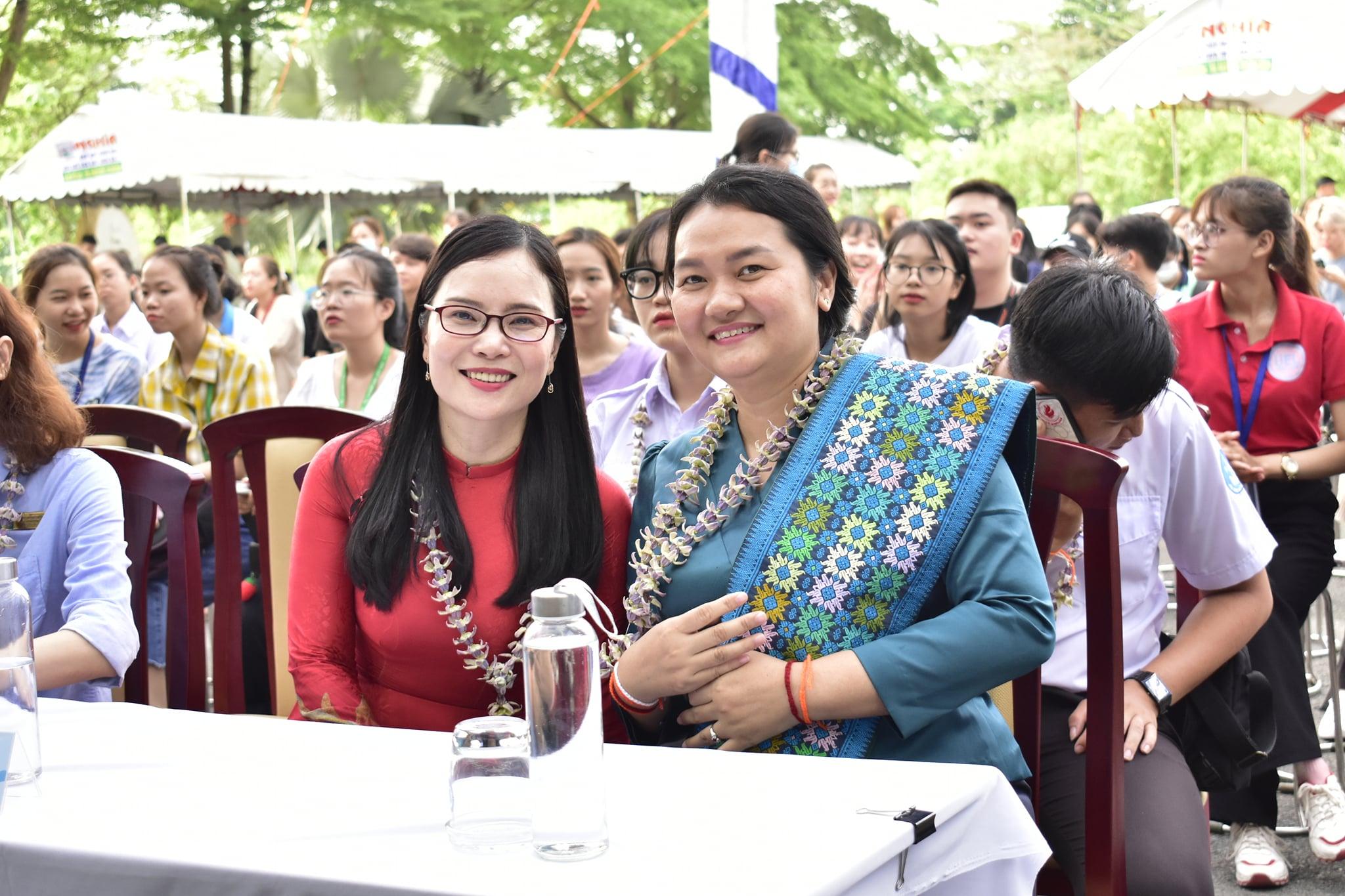 TS Huỳnh Thị Thúy Giang và Bà Vongphan Phomphiphak chụp ảnh lưu niệm tại chương trình
