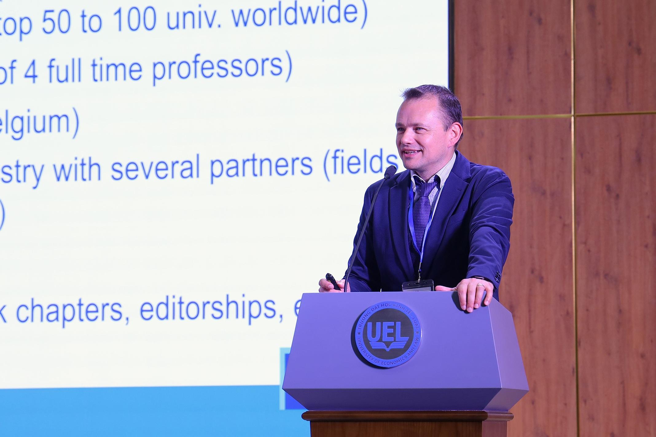 Trong phiên khai mạc, GS. Yves Wautelet đến từ Đại học KU Leuven, Bỉ trình bày tham luận "From Vision to Action: Design Thinking for Circular Systems in the Twin Transition" (Hiện thực hóa tầm nhìn: Tư duy thiết kế cho hệ thống tuần hoàn trong tiến trình chuyển đổi kép). GS nhấn mạnh sự cần thiết của việc thúc đẩy sự vượt trội trong kinh doanh và quản lý dựa trên trí tuệ nhân tạo và công nghệ chuyển đổi số. Theo GS. Yves Wautelet, chuyển đổi kép (bao gồm chuyển đổi số và phát triển bền vững) đòi hỏi các hệ thống phải có khả năng mở, linh hoạt và dễ thích nghi. Điều này có nghĩa là các hệ thống cần được thiết kế để có thể mở rộng, thay đổi theo nhu cầu mới, và phù hợp với các hoàn cảnh khác nhau của xã hội và môi trường.