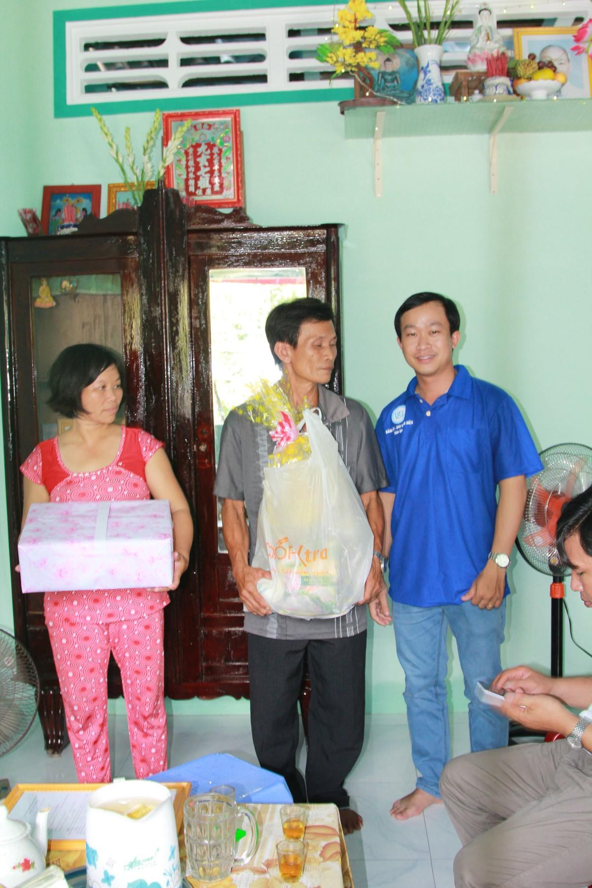 Đại diện Đoàn - Hội trường và các đoàn thể tặng quà cho gia đình chú Nguyễn Văn Tám